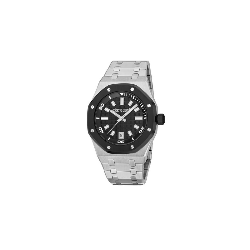Roberto Cavalli Impero Hombres Analógicos Ronda de Acero Inoxidable Negro Ref:RC5G154M0085