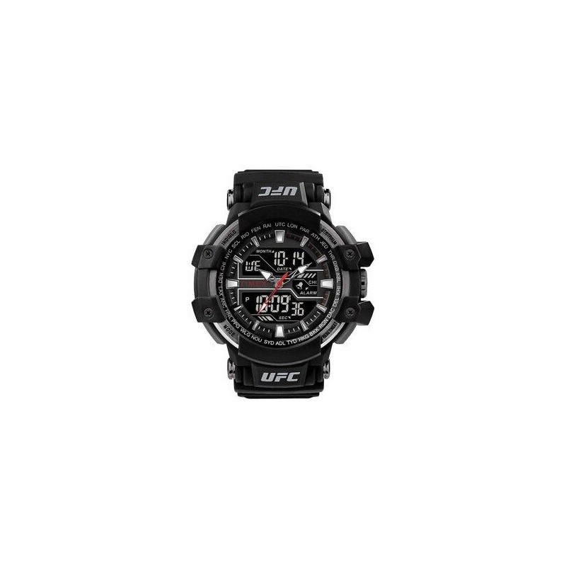 Reloj Timex UFC. Official Timekeeper Of UFC .COMBAT. Caja 53mm de resina negra y dorada, Anadigital Correa de silicona negra, Esfera negra y Resistencia 5ATM