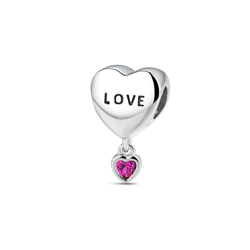 Charm A Tu Lado Corazón Love Plata De Ley Con Piedra Fucsia Ref: 9123159