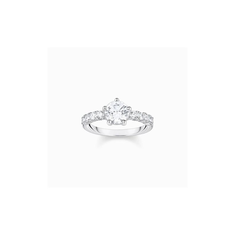 Anillo Thomas Sabo Mujer Solitario Con Circonita Grande y Piedras Pequeñas Blancas Plata De Ley Ref: TR2440-051-14-58