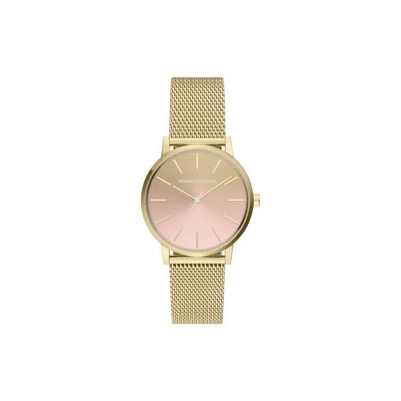 Reloj Armani Exchange Mujer Malla Milanesa Acero En Tono Dorado Esfera Rosa 36mm Ref:AX5619