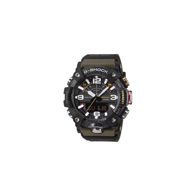 Reloj G-Shock MASTER OF G MUDMASTER. Para los aventureros intrépidos y amantes de la naturaleza, es un reloj resistente y robusto, con bisel y caja fabricados en carbono de alta resistencia y materiales respetuosos con el medio ambiente. Ref:GG-B100X-1AER Ref:GG-B100X-1A3ER