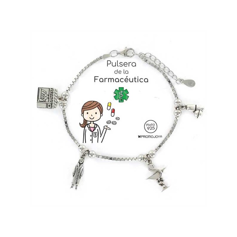 Colección Eres Lo Más Farmaceútica pulsera cadena veneciana rodiada con colgantes Ref: 9105404