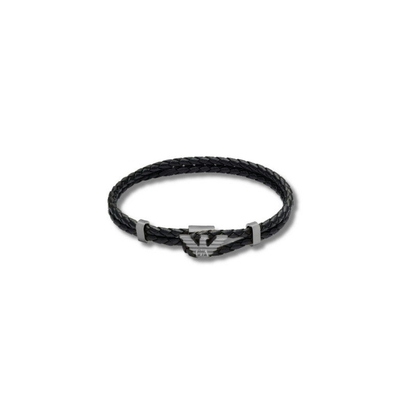 Pulsera Emporio Armani Caballero Piel Negro y Acero Logo Ref: EGS3322060