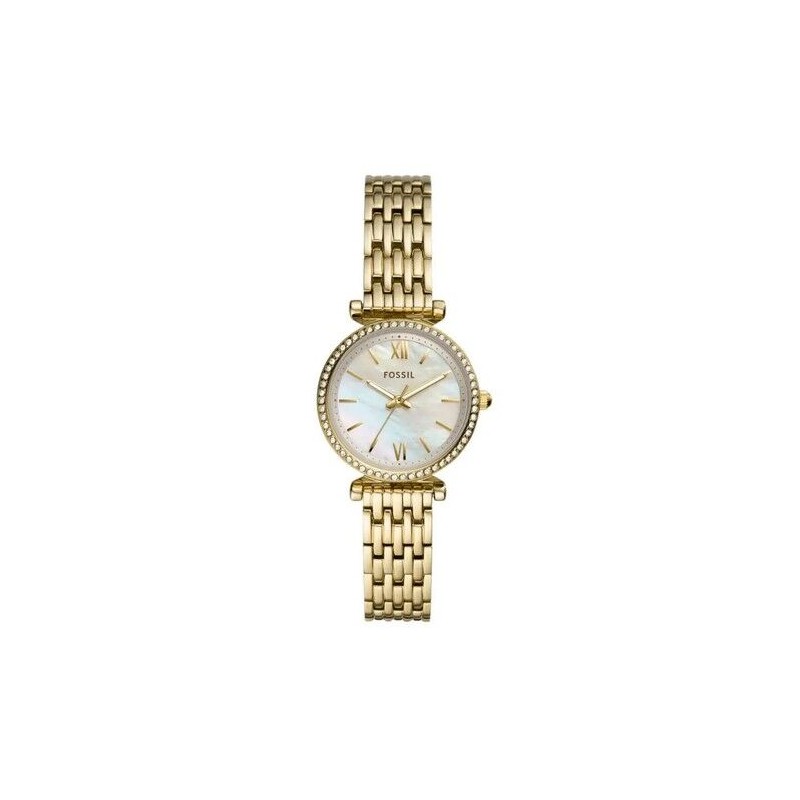 Reloj Fossil Mujer Carlie Mini Acero Ip Dorado Esfera Nácar Bisel Circonitas Blancas 28mm Ref: ES4735