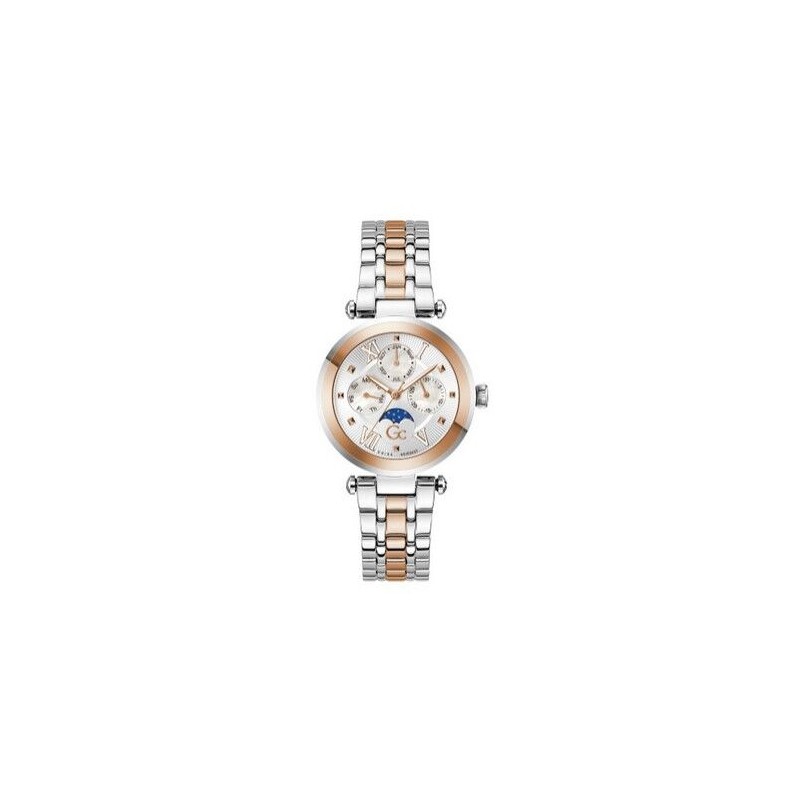 Reloj Guess Colllection TopChic Mujer Bicolor Acero/IP Rose Suizo Esfera Plateada Multifunción y Fase Lunar 36mm Ref: Z62001L1