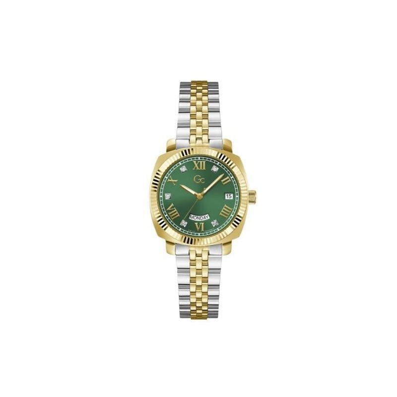 Reloj Guess Collection GC Flair Coussin Lady Mujer Bicolor Acero/IP Dorado Suizo Esfera Verde 34mm Ref: Z44002L9MF