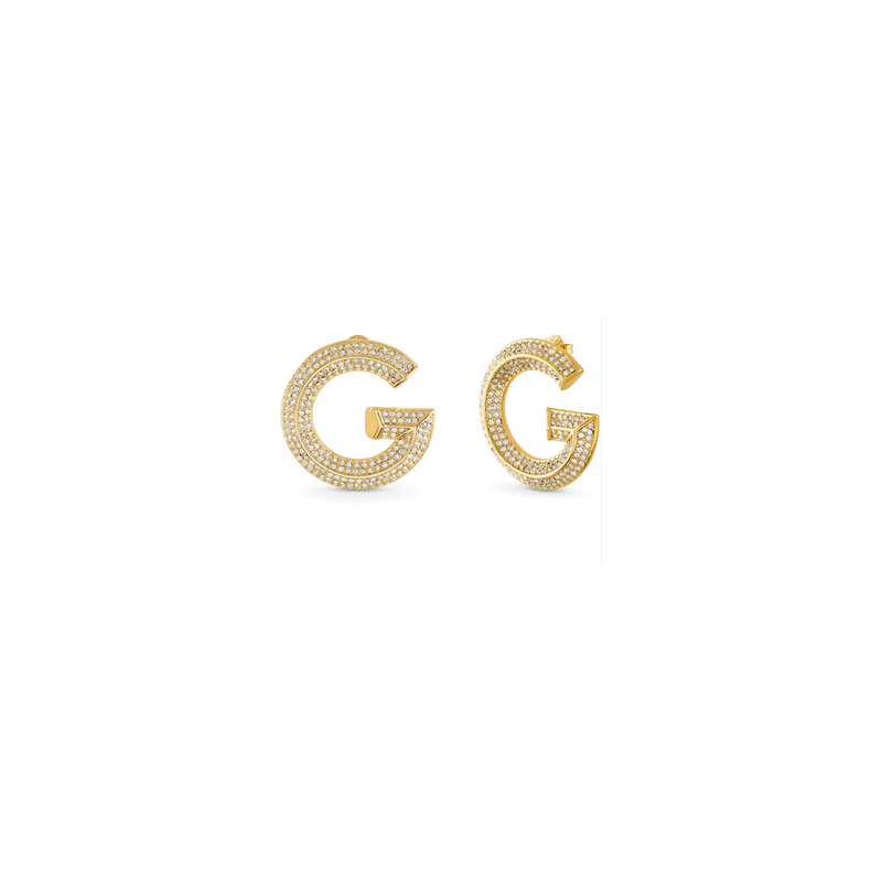 Pendientes De Aro Guess Mujer G Crystal Icónica "G" Acero Dorado Pavé Circonitas Blancas Ref: JUBE05434JWYGT-U