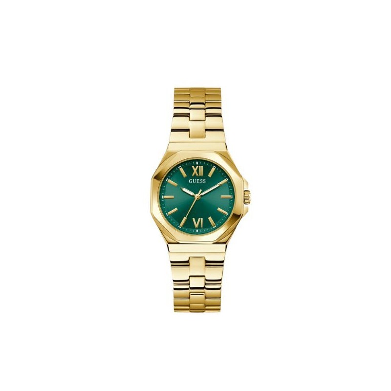 Reloj Guess Mujer Empress Acero IP Dorado Esfera Rayos De Sol Verde 34mm Ref: GW0873L2