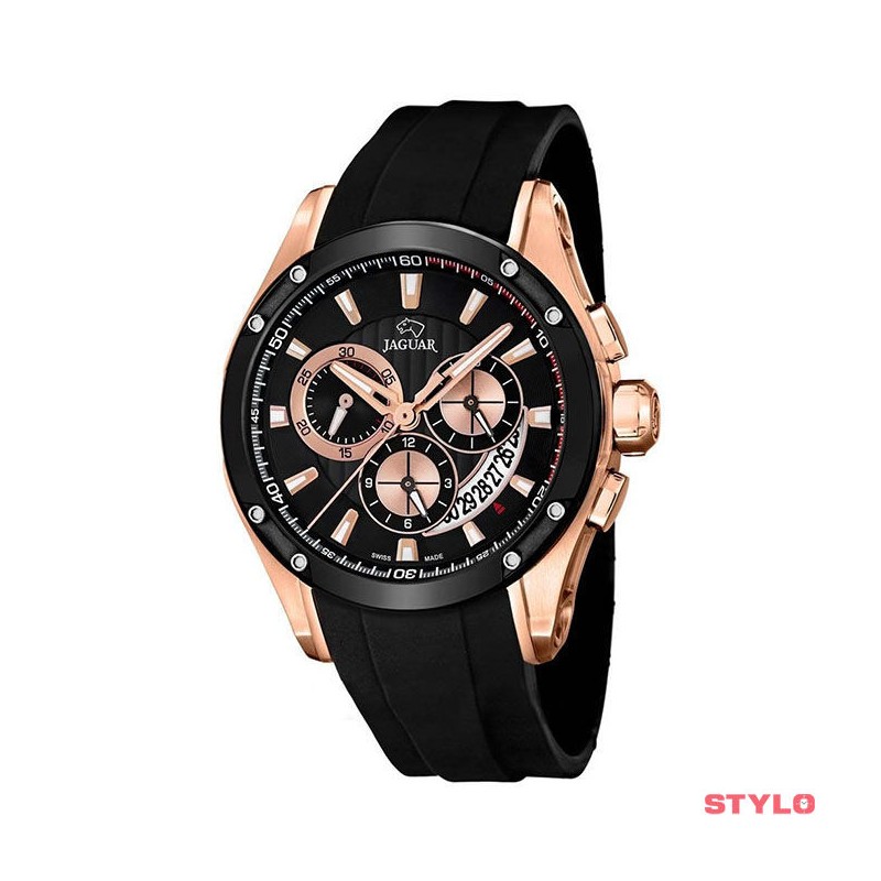 Reloj Jaguar Special Edition Caballero Caucho Negro Esfera Negra Cronógrafo 45mm Ref: J691/1