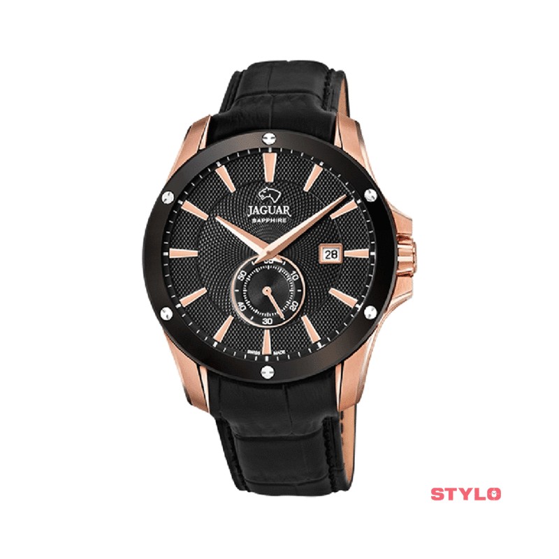 Reloj Jaguar Acamar Caballero Suizo Piel Negro Esfera Negra Rosé 44mm Ref: J882/1