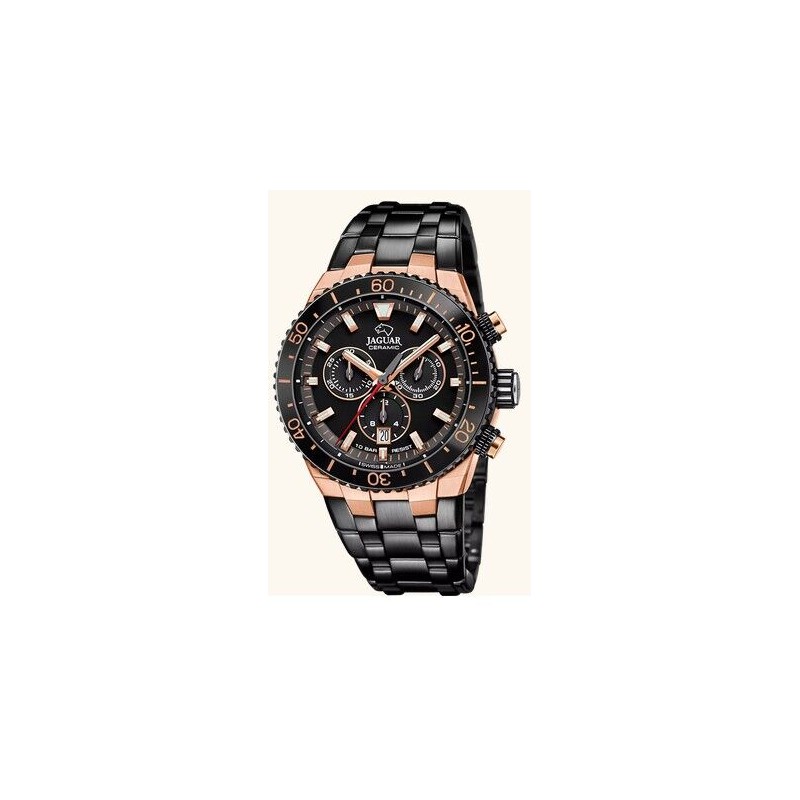 Reloj Jaguar Caballero Ceramic Negro Swiss Made Cerámico Negro y Acero IP Rosado Cronógrafo Cristal Zafiro 44,8mm Ref: J1023/1