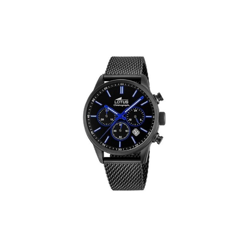 Reloj Lotus Caballero Chrono Esfera Negra Acero Negro, Ref: 18700/3