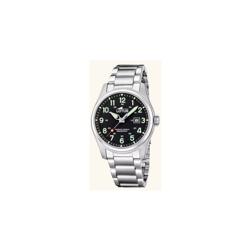 Reloj Lotus Caballero Minimalist Acero Esfera Negra Con Calendario 42mm Ref: 19054/4