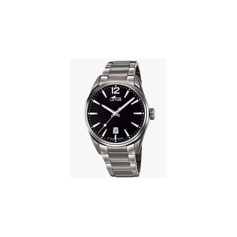 Reloj Lotus Chrono Caballero Acero IP Gris Esfera Negra Indices Blancos 42mm Ref: 18684/3