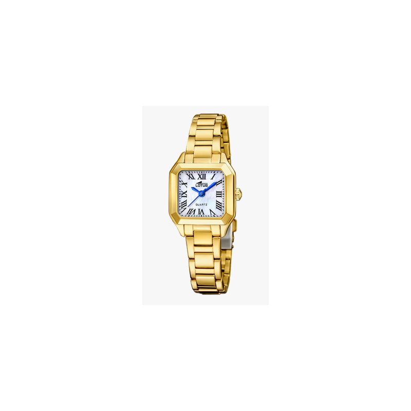 Reloj Lotus Mujer Old Money Acero Ip Dorado Cuadrado Esfera Plata Números Romanos Negros Indices Azules 24mm Ref: 19037/2
