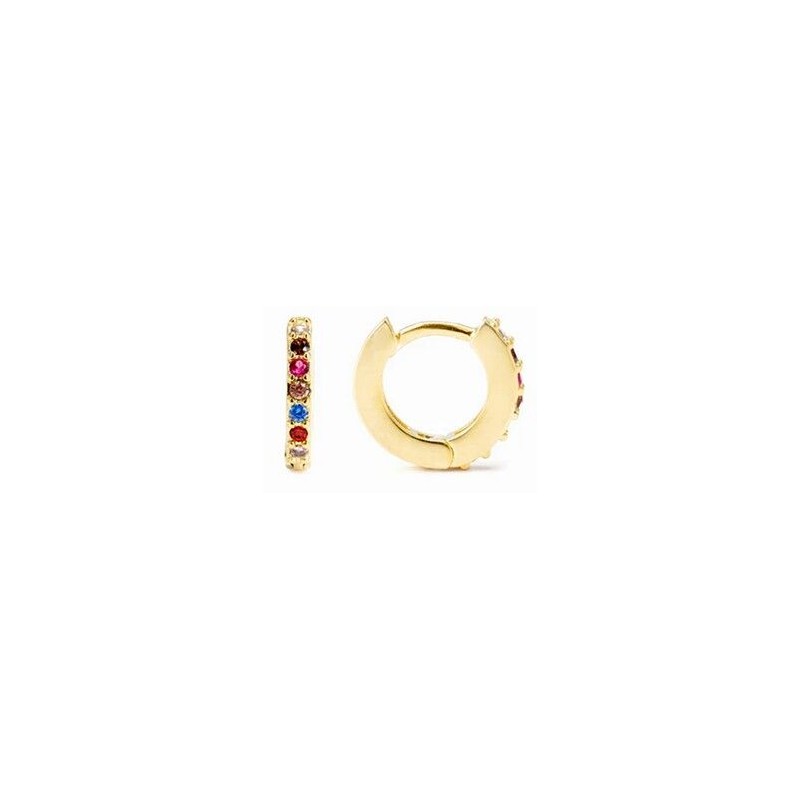 Pendientes de 7mm de Plata de Ley 925 con Circonita Multicolor acabados en oro amarillo de 18K - Leofcar Ref:EG093Y20C00