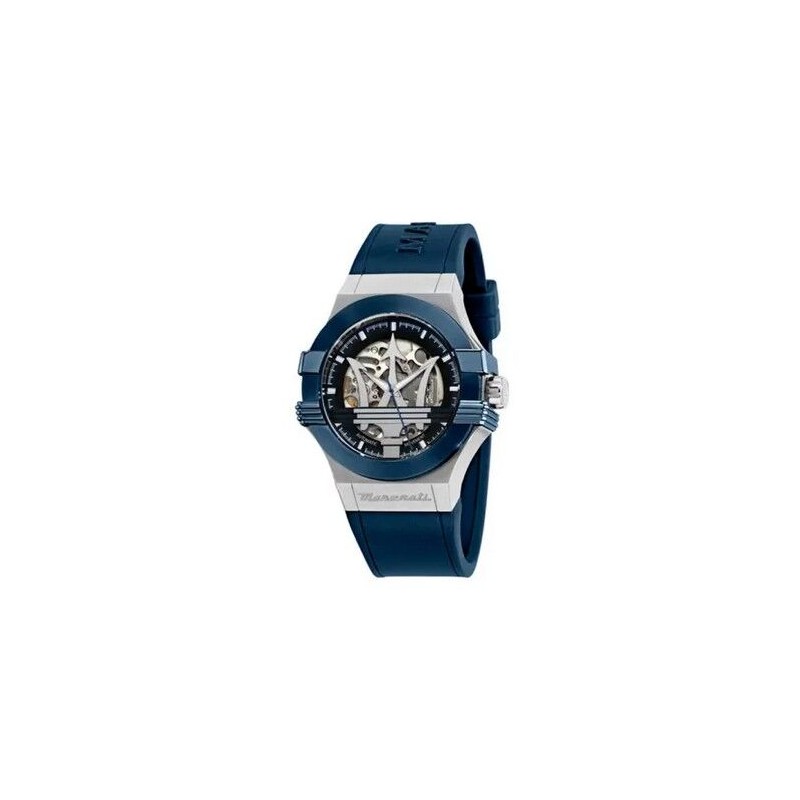 Reloj Maserati Caballero Potenza Automático Correa Silicona Azul Bisel Azul Caja Acero Cristal Zafiro 42mm Ref: R8821108050