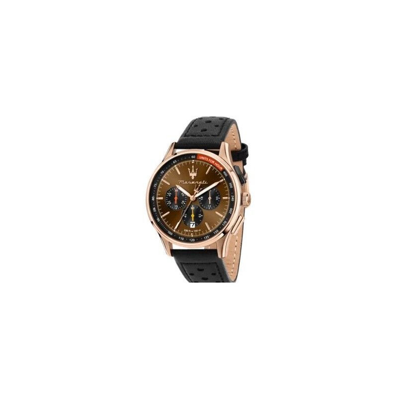 Reloj Maserati Caballero Sorpasso Piel Negra Cronógrafo Caja En Acabado Acero Rosa Esfera Marrón 42mm Ref: R8871624011