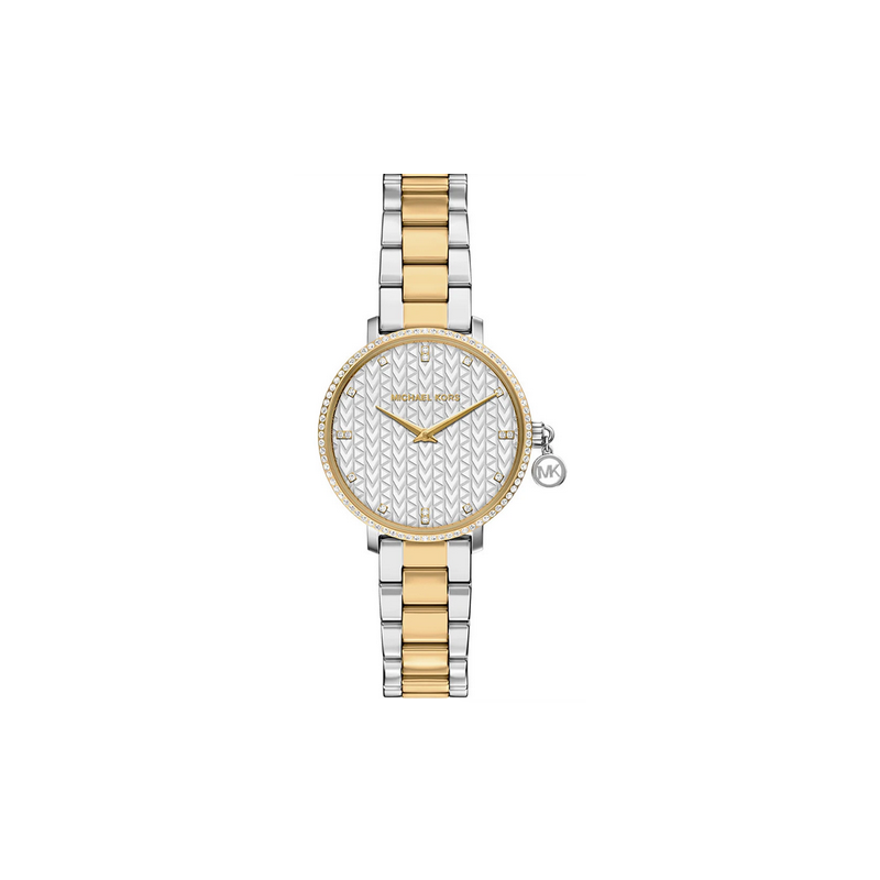 Reloj Michael Kors Mujer Pyper Mini Bitono Acero/IP Dorado Con Incrustaciones Circonitas Blancas Esfera Blanca 32mm Ref: mk7574