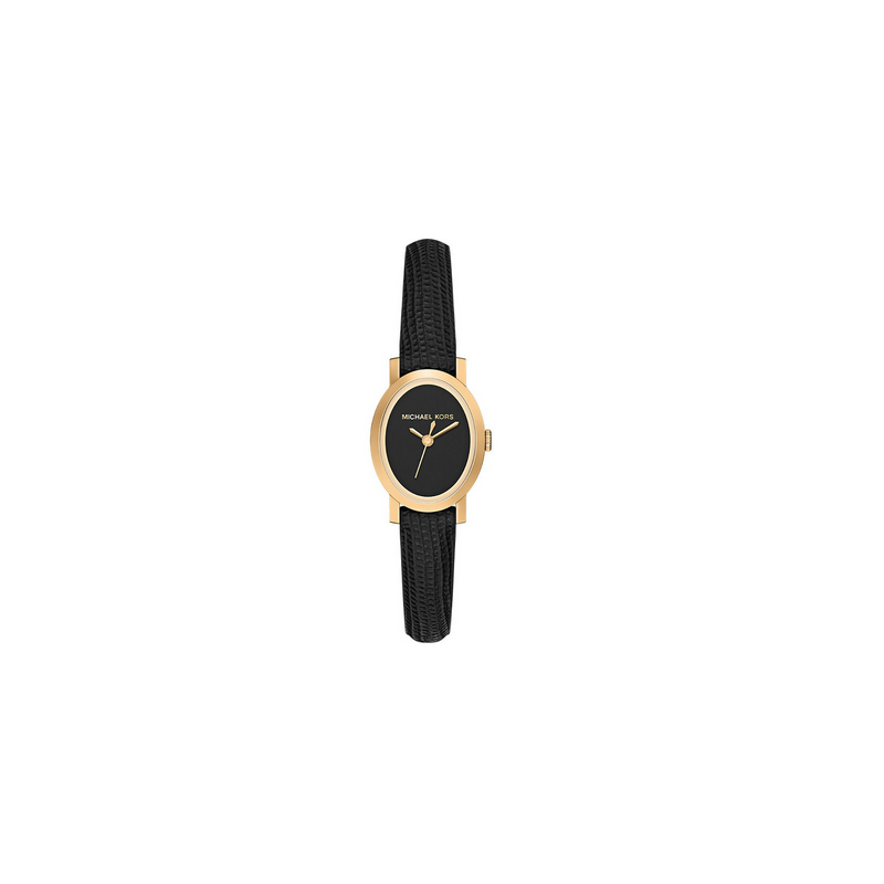 Reloj Michael Kors Mujer Maude Piel Negra Caja Ovalada Acero IP Dorado Esfera Negra 21mm Ref: MK7585
