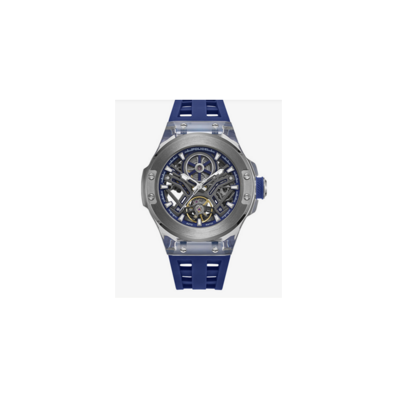 Reloj Police Caballero Cyclone Correa Silicona Azul Caja Acero IP Gris Automático 43,5mm Ref: PEWGR0082204
