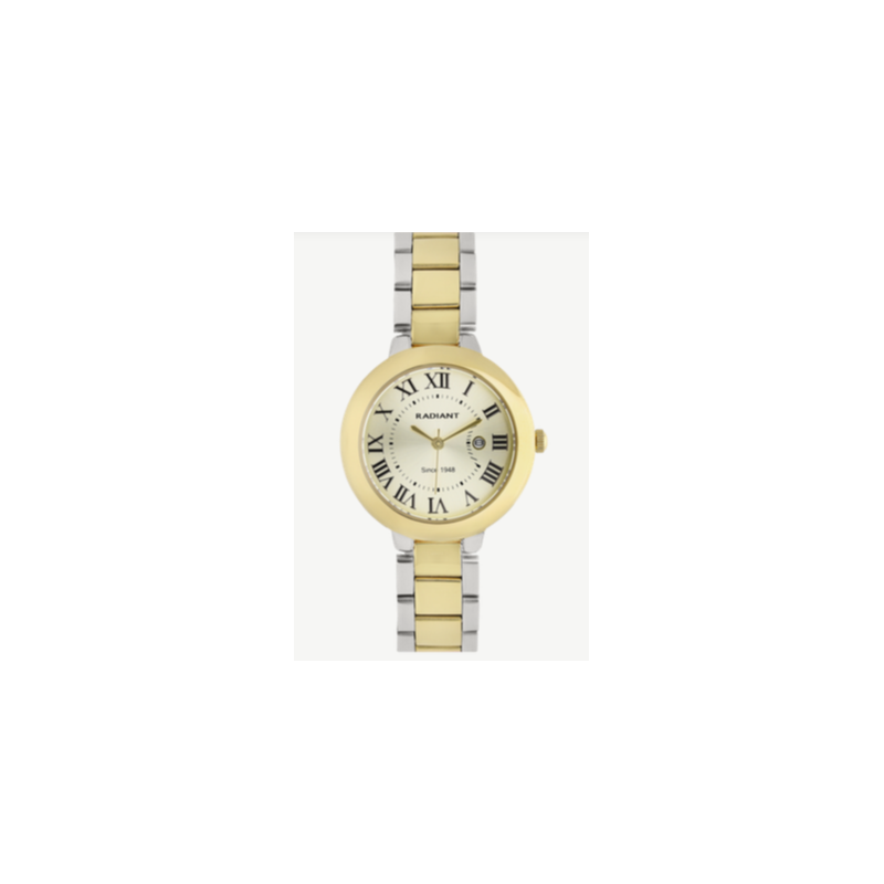 Reloj Radiant Mujer Golden Hour Bicolor Caja Metálica Redonda Dorada Esfera Plateada Con Números Romanos 33mm Ref: RA684202