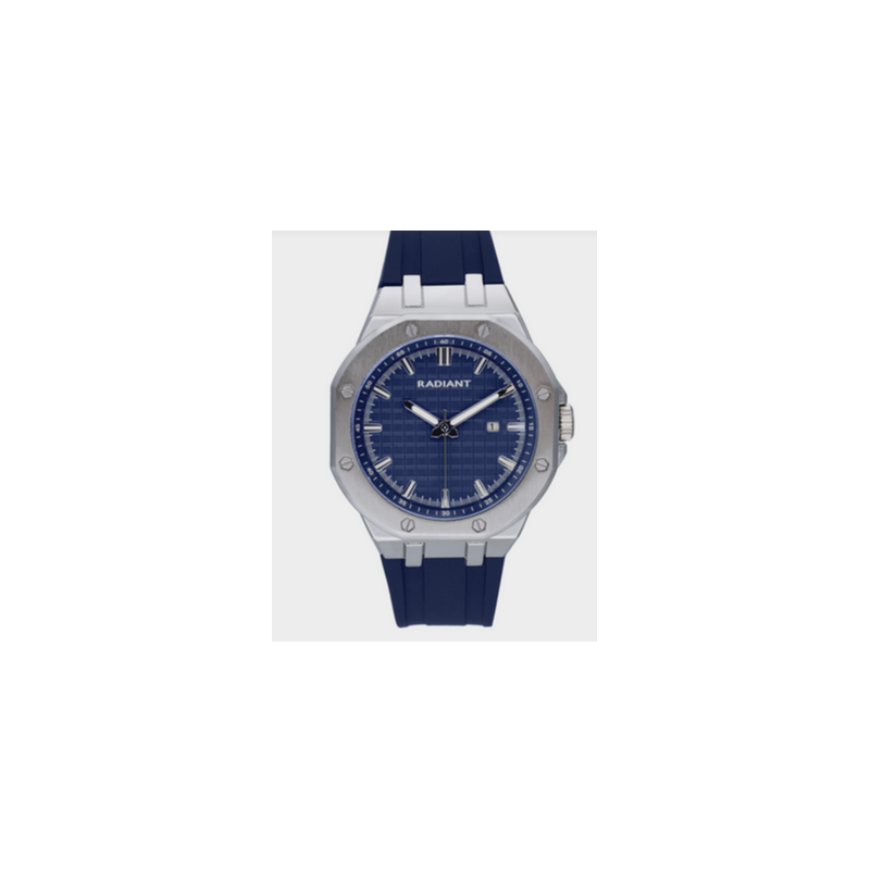 Reloj Radiant Caballero Leonardo Correa Silicona Azul Caja Metálica Plateado Esfera Azul 44mm Ref: RA652203