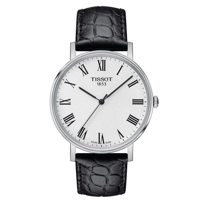 Reloj Tissot Caballero Everytime 40mm Caja Acero Esfera Blanca Piel Negra Movimiento Suizo Cristal Zafiro Ref: T1094101603301