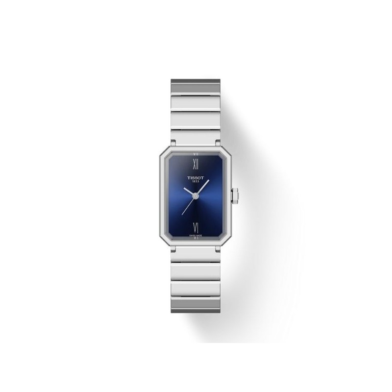 Reloj Tissot Mujer SRV 30mm Acero Rectangular Esfera Azul Cristal Zafiro Movimiento Suizo Ref: T1601101104300