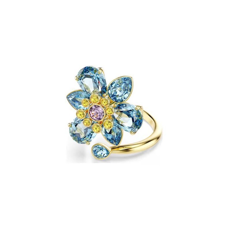 Anillo abierto Idyllia SwarovskI Flor Azul Baño Tono Oro Ref: 5721591