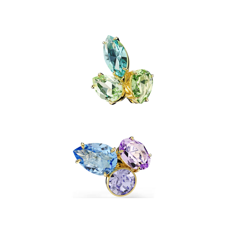 Pendientes Ear Cuff Swarovski Gema Diseño Asimétrico Tallas Mixtas Multicolores Baño Tono Oro Ref: 5741585