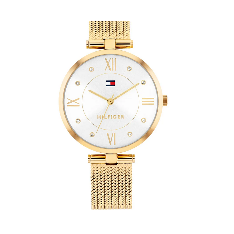 Reloj Tommy Hilfiger Mujer Ella Malla Milanesa Dorado 34mm Ref: 1782805