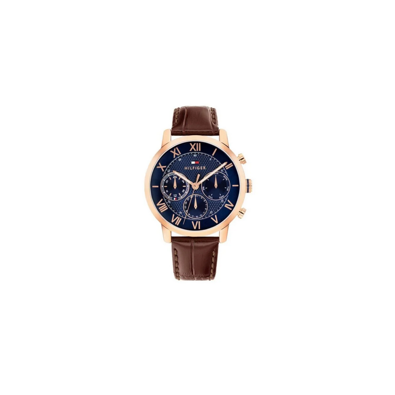 Reloj Tommy Hilfiger Caballero TH-Oxford Piel Marrón Esfera Azul Ip Rosé Multifunción 42mm Ref: 1710727