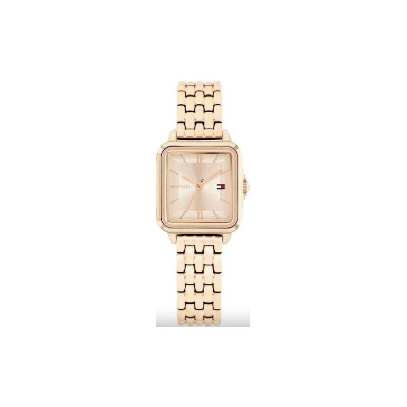 Reloj Tommy Hilfiger Mujer Mia Acero IP Rosado Caja Rectangular Esfera Rosada Números Romanos 24mm Ref:1782833