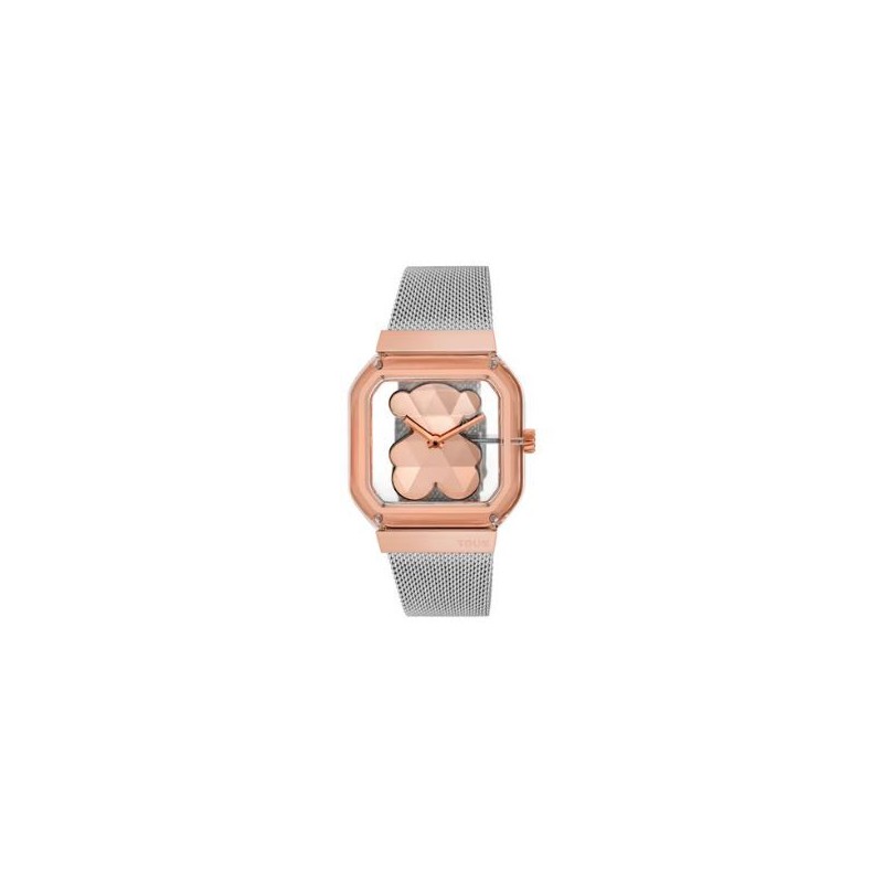 Reloj Tous Mujer Analógico Con Brazalete De Acero De Malla Milanesa y Caja Acero Rosado D-Bear Party Ref: 3000143600