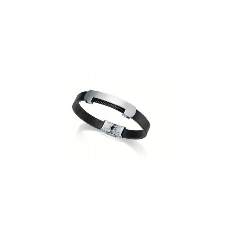 Pulsera VICEROY FASHION Caballero Piel Negro y Placa Acero Ref: 75183P01010