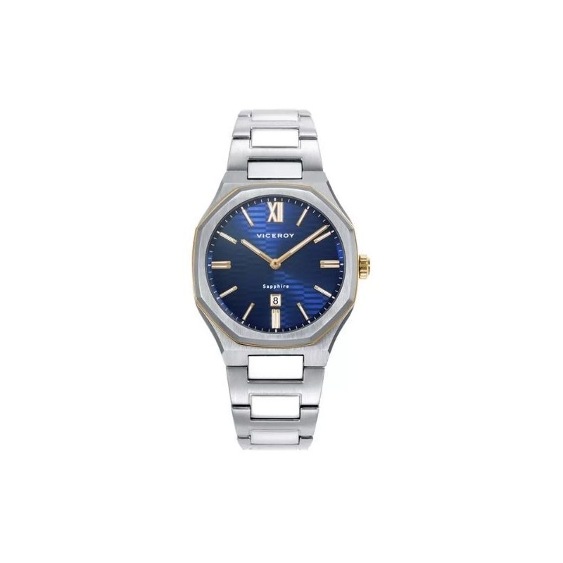 Reloj Viceroy Mujer Colección Laura Escanes Con Doble Bisel Acero e IP Dorado Esfera Azul Cristal Zafiro 33mm Ref: 45000-33