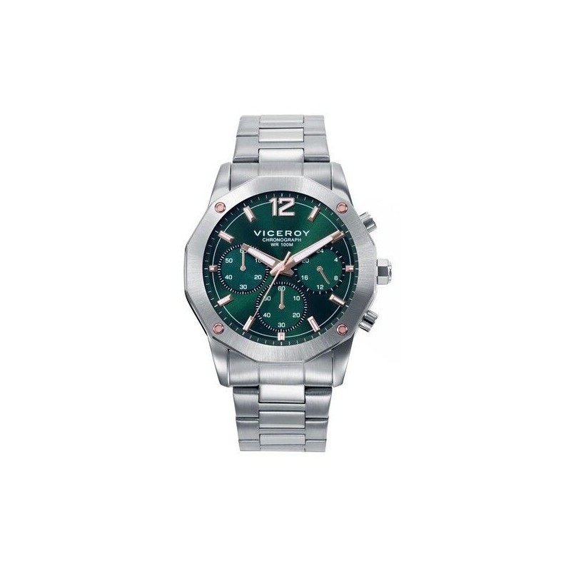 Reloj Viceroy Caballero Magnum Acero Esfera Verde Con Detalles En IP Rosado Cronógrafo 42mm Ref: 401447-65